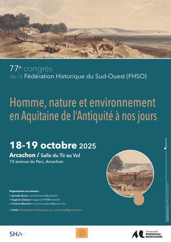Les 18 et 19 octobre prochains, la FHSO organise en partenariat avec la Société Historique et Archéologique d’Arcachon et du Pays de Buch (SHAAPB) le 77e congrès consacré au thème : Homme, nature et environnement en Aquitaine de l’Antiquité à nos jours.