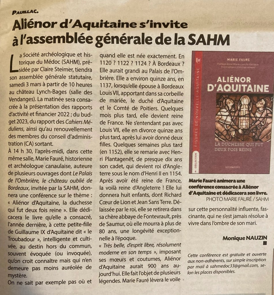 Lors de ces trois événements, vous pourrez vous procurer la Petite Monographie ; elle sera également en vente lors de notre assemblée générale le 22 mars à Pauillac. Encore un peu de patience pour la trouver dans nos points de vente habituels du Médoc : le travail de distribution et de diffusion est en cours !