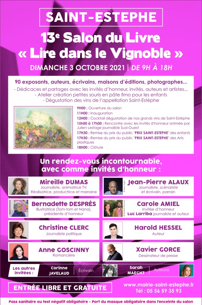 Retrouvez également la Société au traditionnel salon du livre de Saint-Estèphe, le dimanche 6 octobre : https://www.mairie-saint-estephe.fr/event/sao-du-livre-lire-dans-le-vignoble