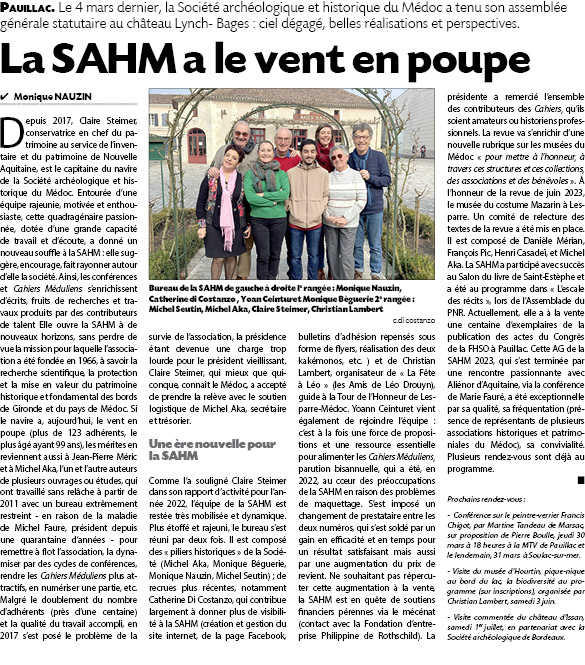 Merci à Monique Nauzin pour son article paru dans le Journal du Médoc qui fait suite à notre assemblée générale du 4 mars dernier.